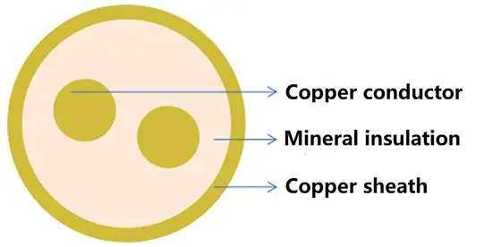 Mineral yalıtımlı kablolar bakır iletken, magnezyum oksit toz mineral yalıtım ve bakır kılıftan oluşur. Bakırın aşındırıcı olduğu fabrikalarda kablolar kullanıldığında, en dışta bir polivinil klorür (PVC) tabakası eklenebilir. Kablo için estetiğin veya kolay erişilebilirliğin önemli olduğu binalarda veya yer altı lokasyonlarında halojen içermeyen, az dumanlı dış kılıf eklenebilir.