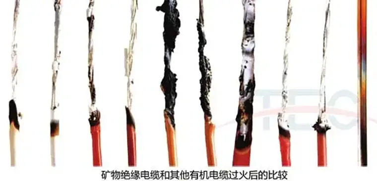 Mineral yalıtımlı kablolar, yangına dayanıklılık testinden sonra neredeyse hiç değişiklik göstermedi. Organik yalıtımlı kablolarda bariz karbonlaşma görüldü.