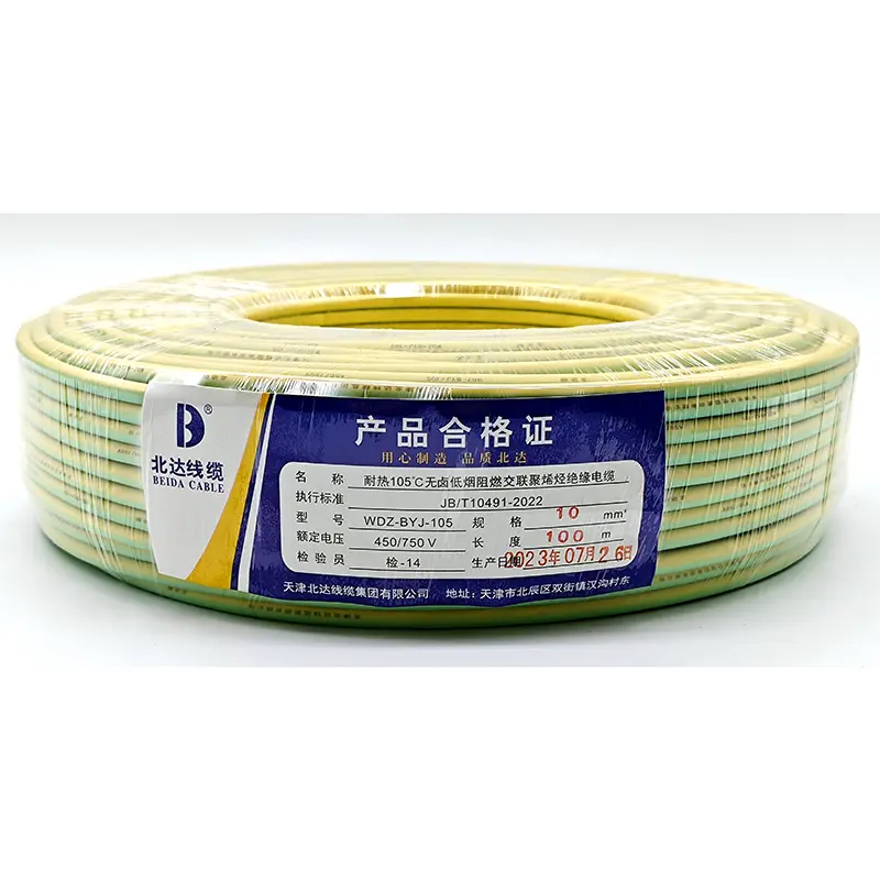 Tianjin Beida, WDZ-BYJ Tek Damarlı Kablo üreticiniz ve tedarikçiniz olmak için iyi bir seçimdir. Bu kablo türü yandığında daha az duman ve zehirli gazlar çıkararak PVC kablolara göre insan vücuduna çok daha az zarar verir. Ayrıca insanların kaçması için daha uzun bir süre sağlar. Bu nedenle bu tip kablolar çoğunlukla yüksek binalarda ve yoğun nüfuslu alanlarda kullanılmaktadır.